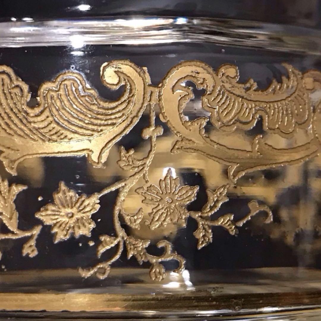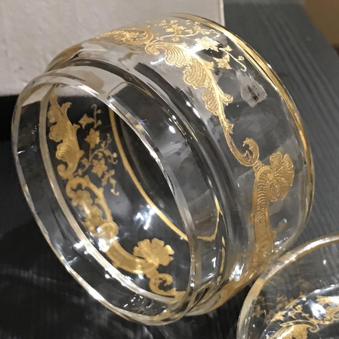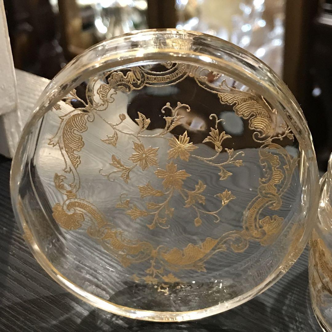 手吹きグラスに模様を彫りそこに金彩を重ね塗りした美しいグラスです。