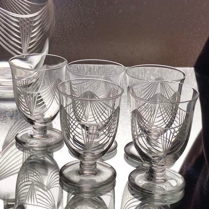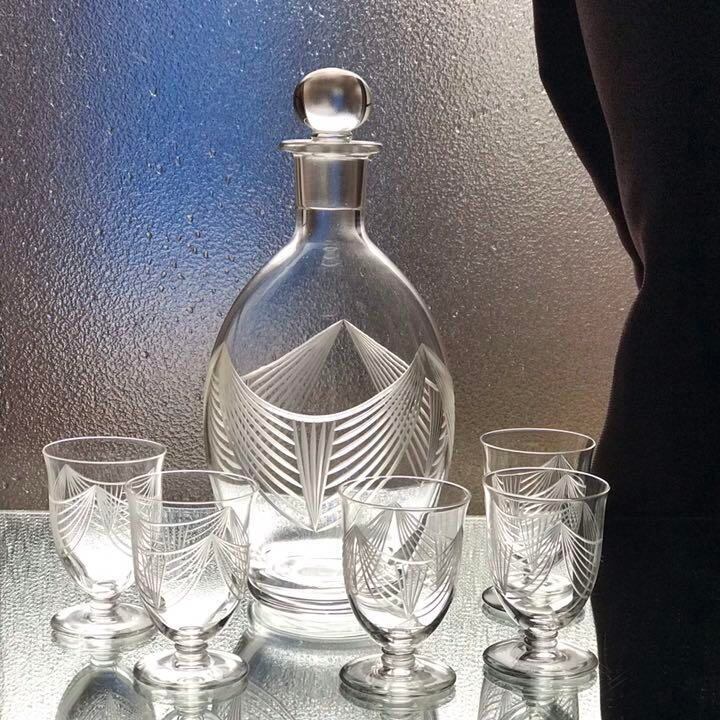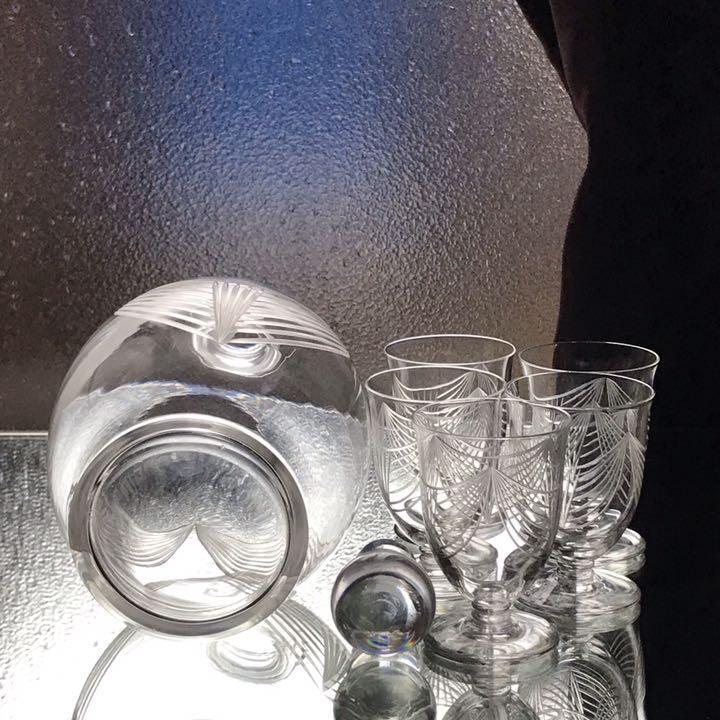 極稀少美しいオールドバカラBACCARATデカンタとワイングラス5個セット Bilbaoビルバオ