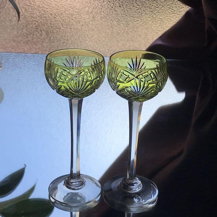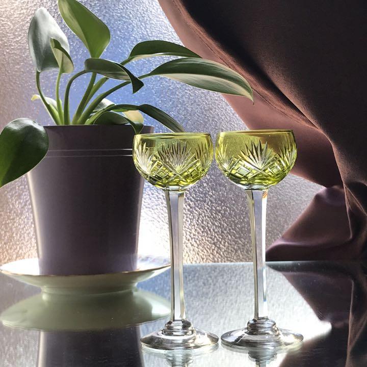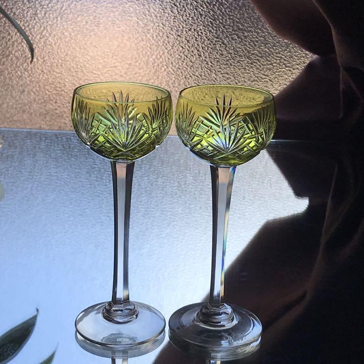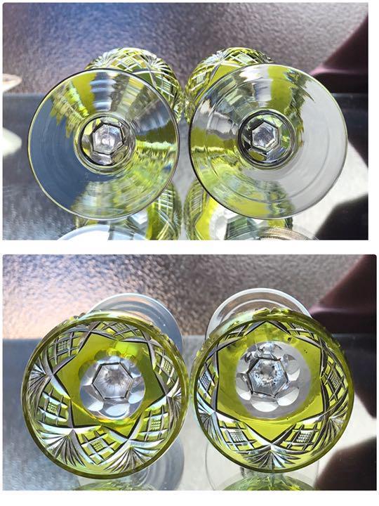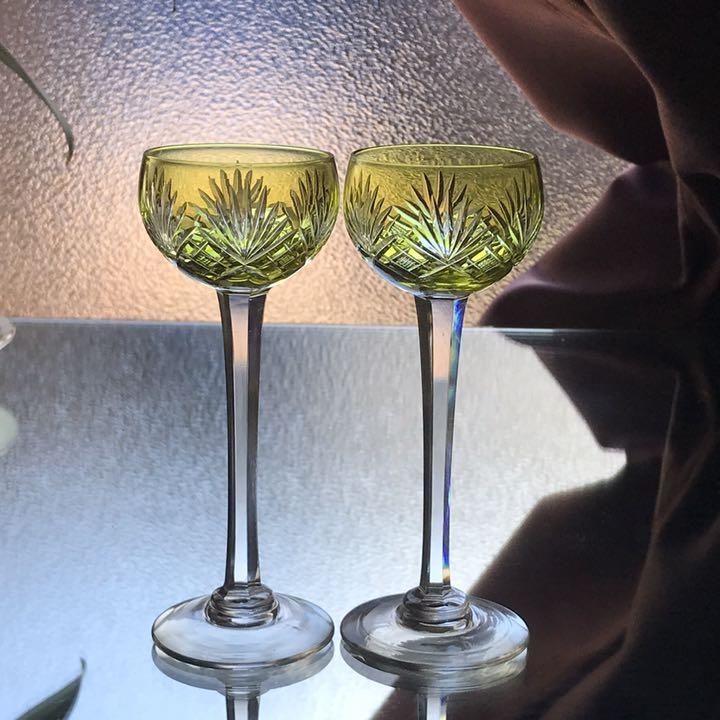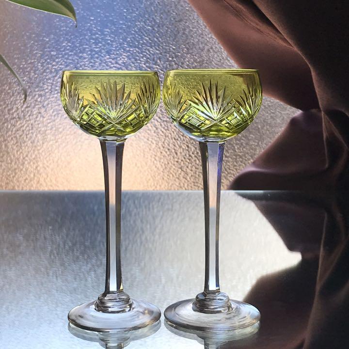 可愛い被せオールドサンルイSaint Louisリキュールショットグラス黄色ペア