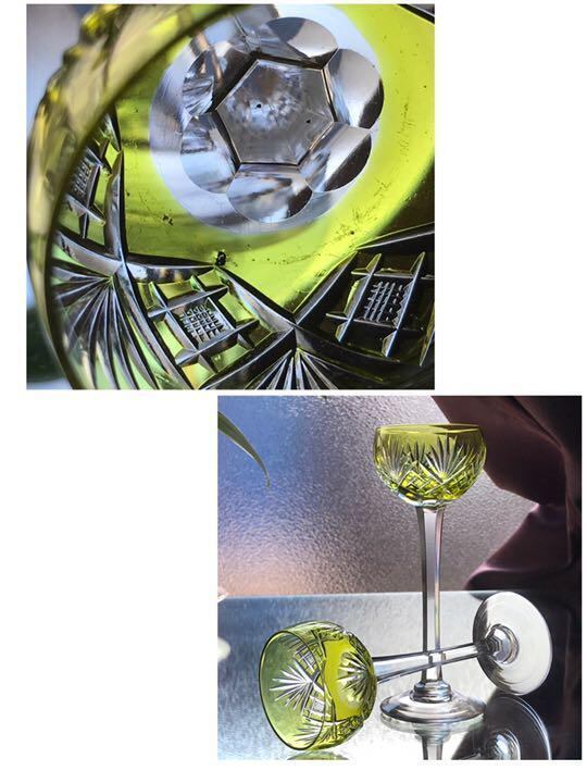 透明なクリスタルガラスの上から黄色いクリスタルガラスを被せ