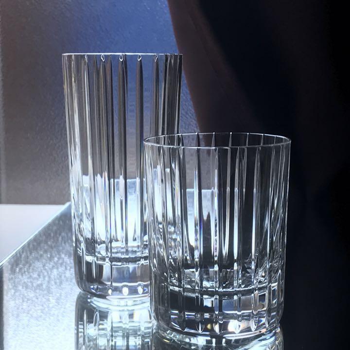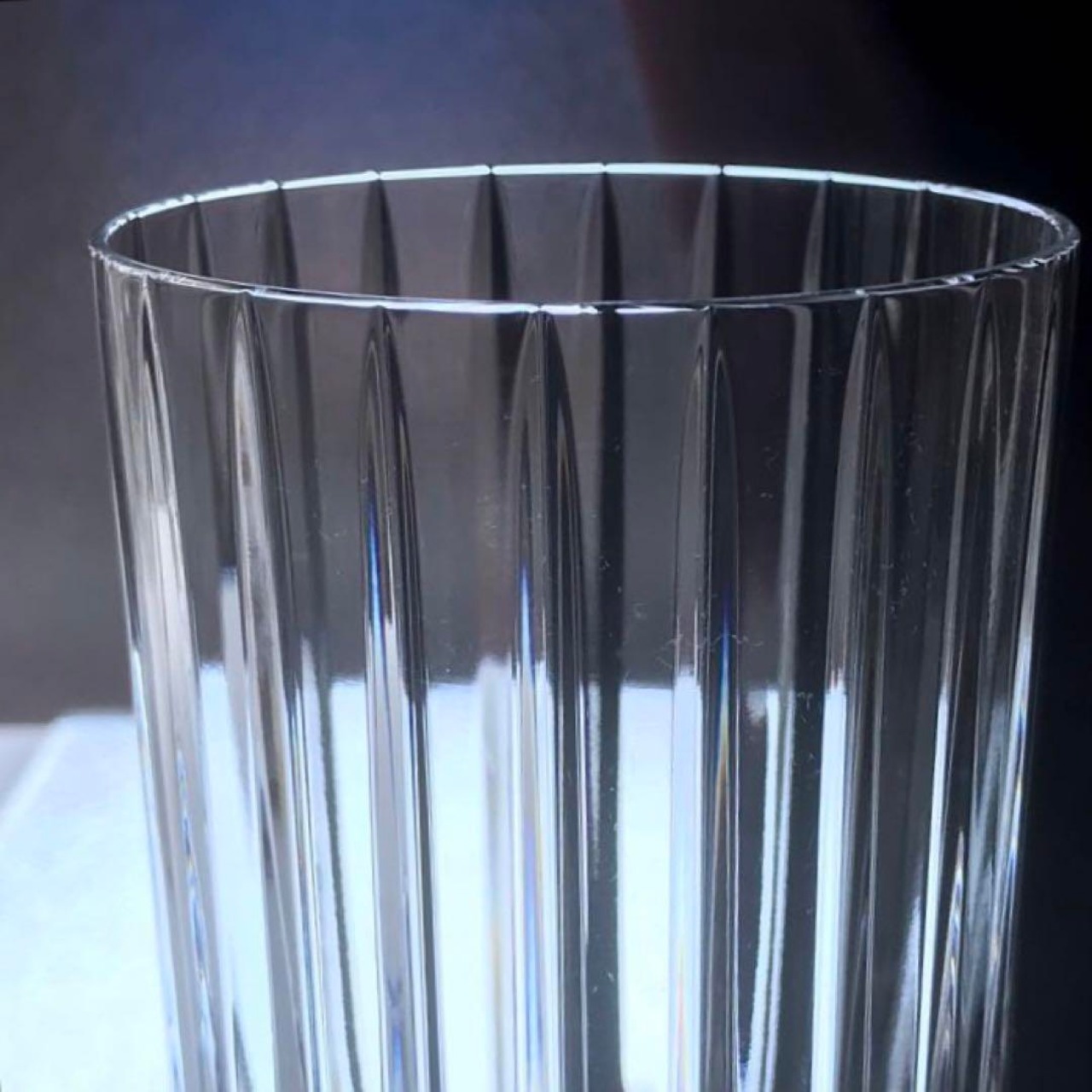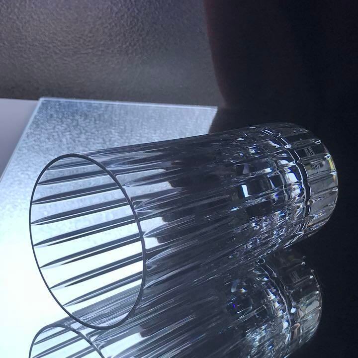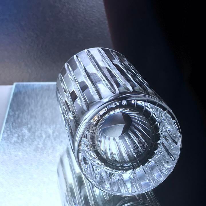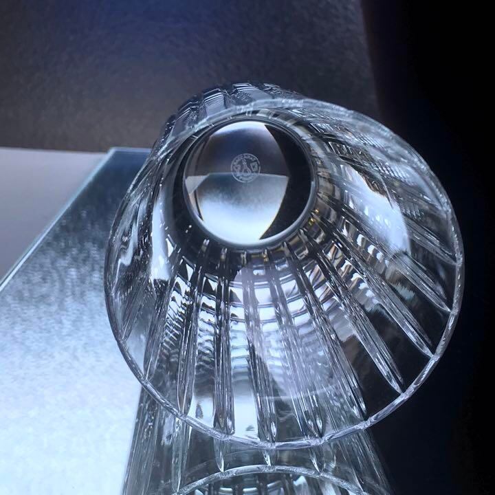 グラスの周りに施された垂直カットの素晴らしい輝きが