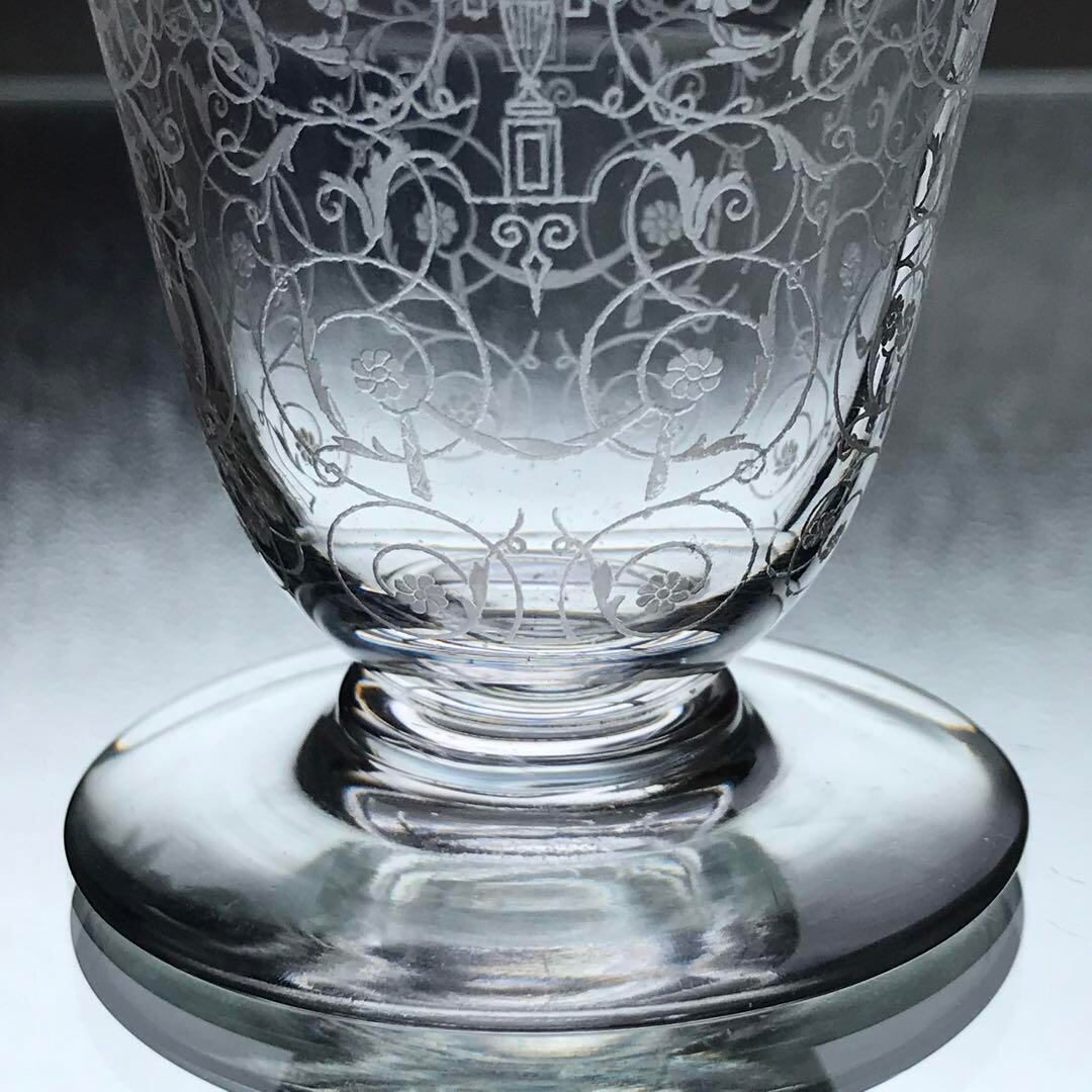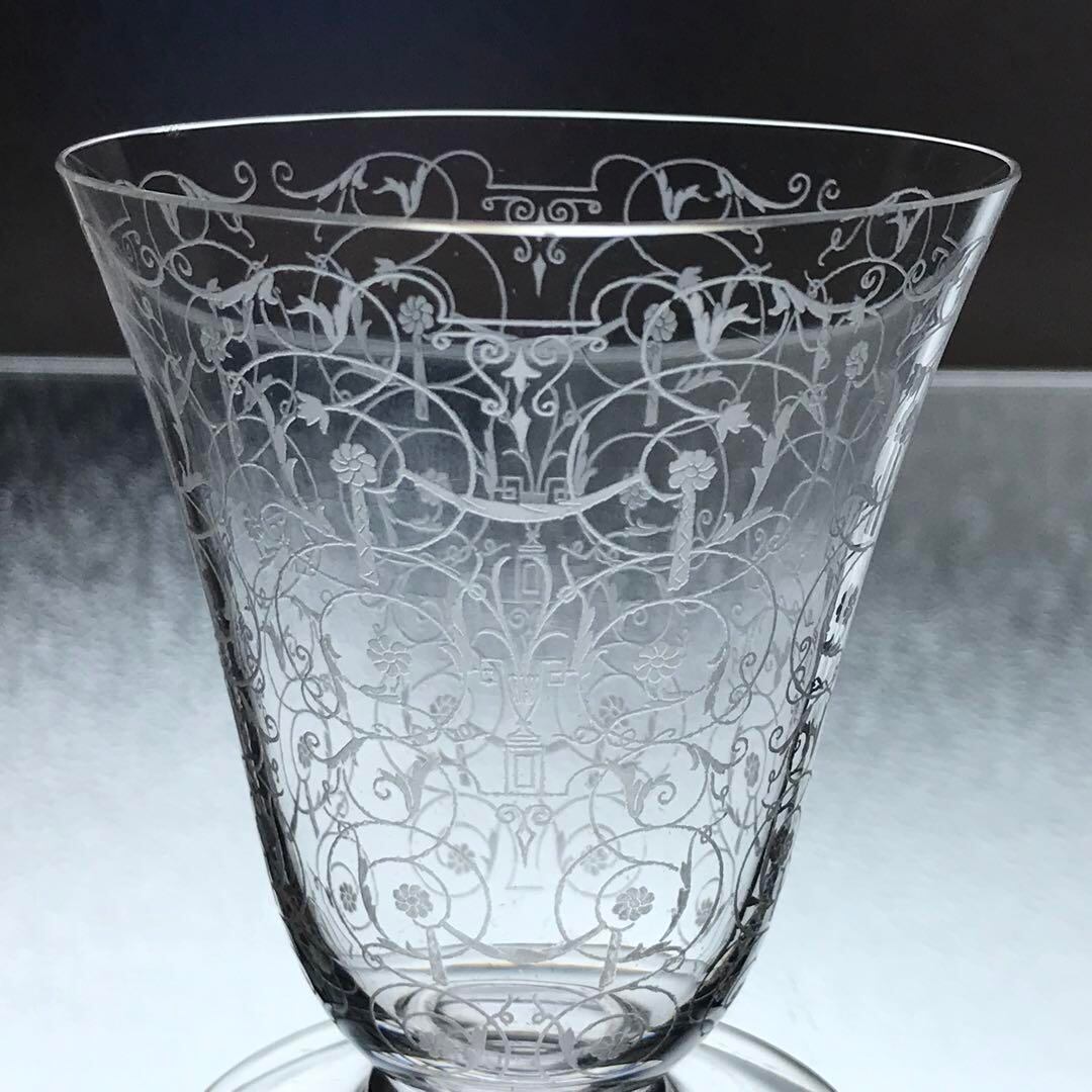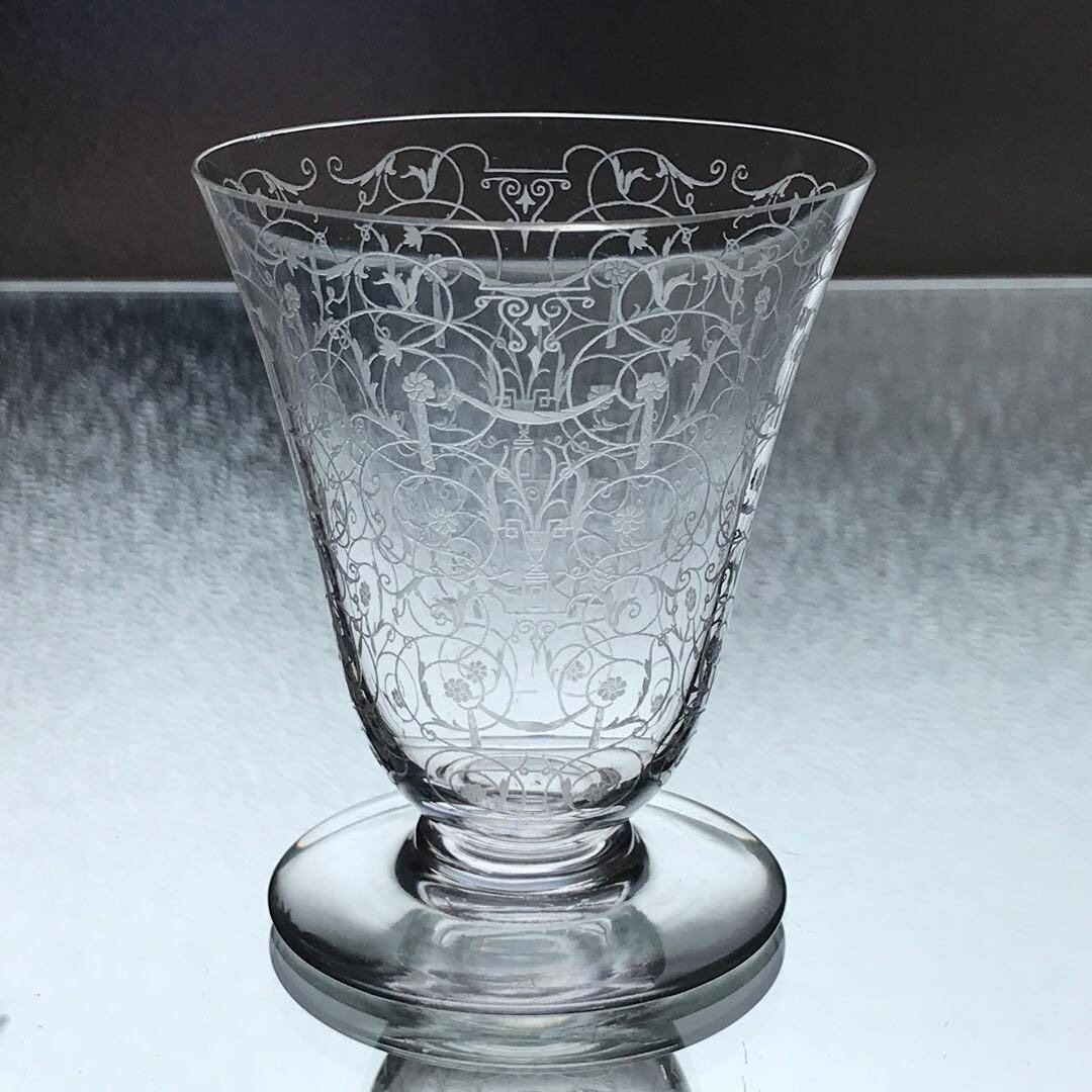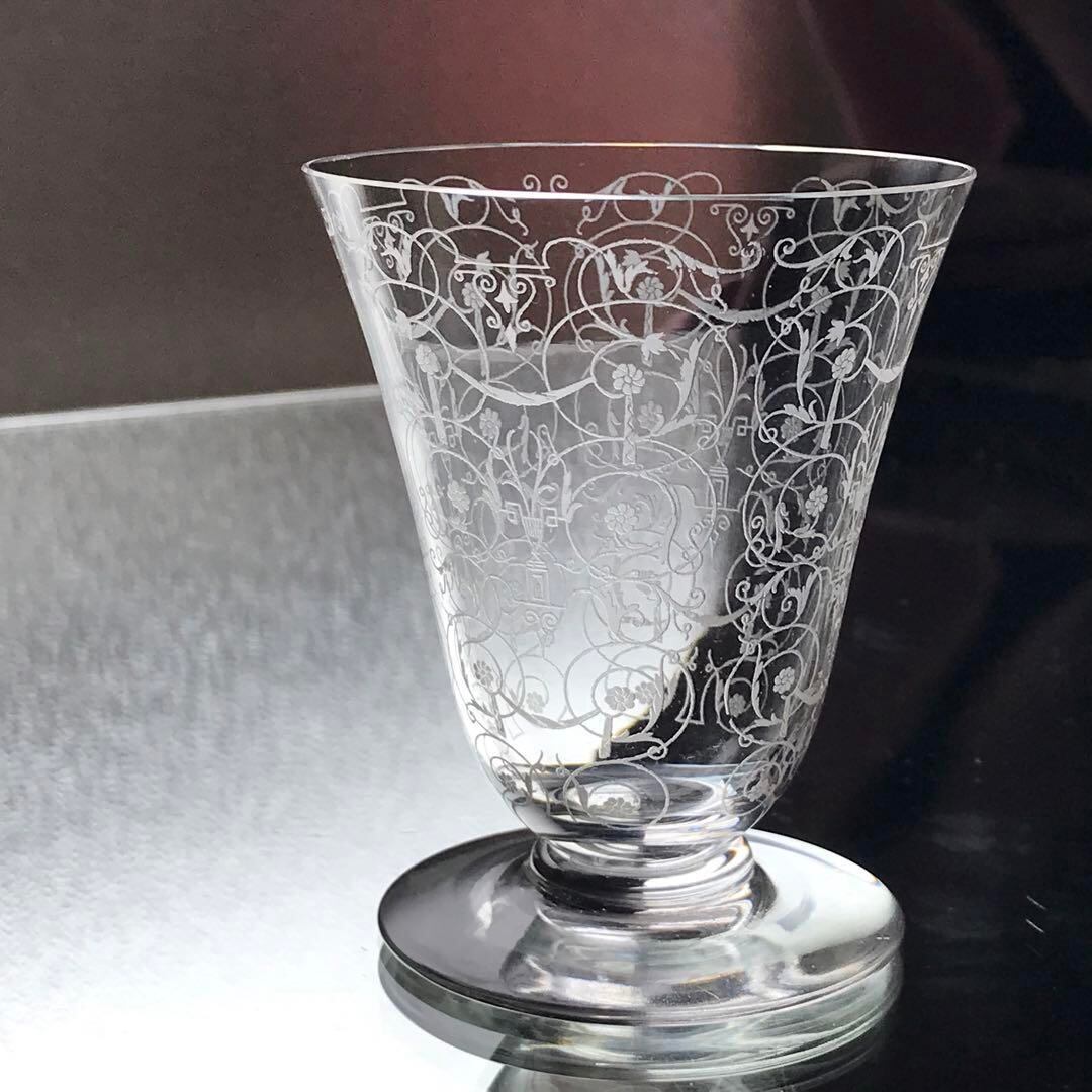エッチングでクラシカルな文様が全体に入った「ミケランジェロ」のグラス