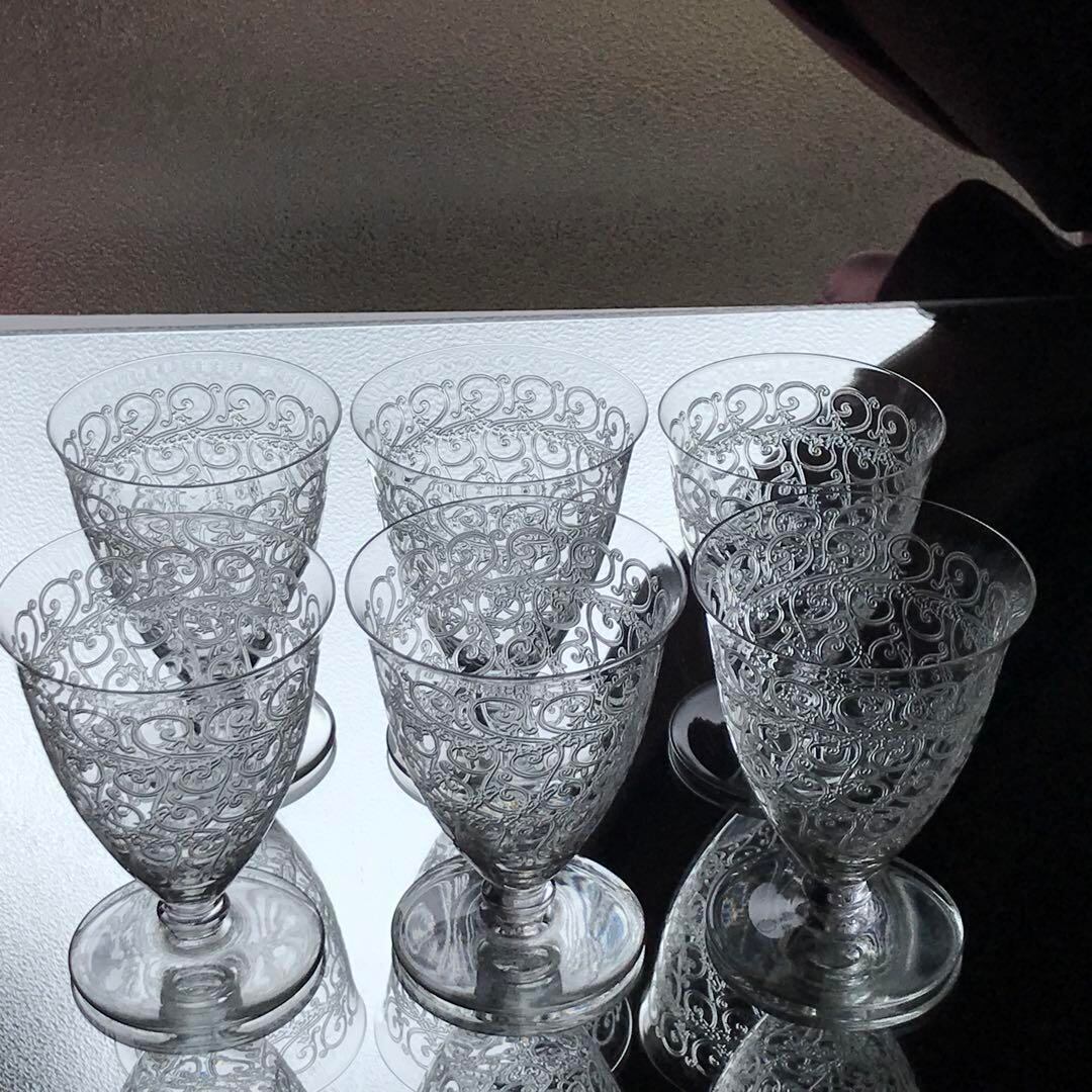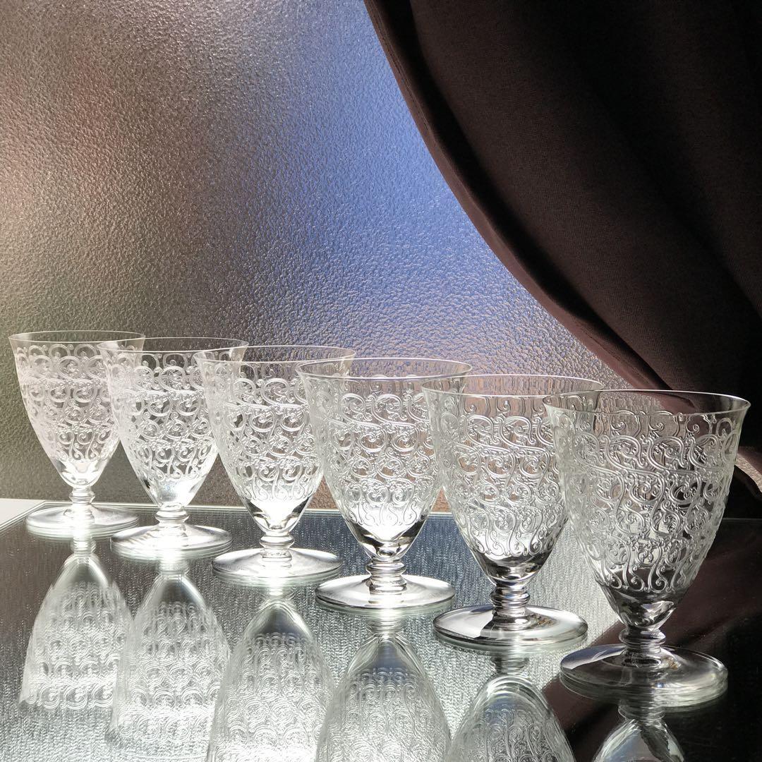 クリスタルワイングラス(水用にも)6個の出品でございます。