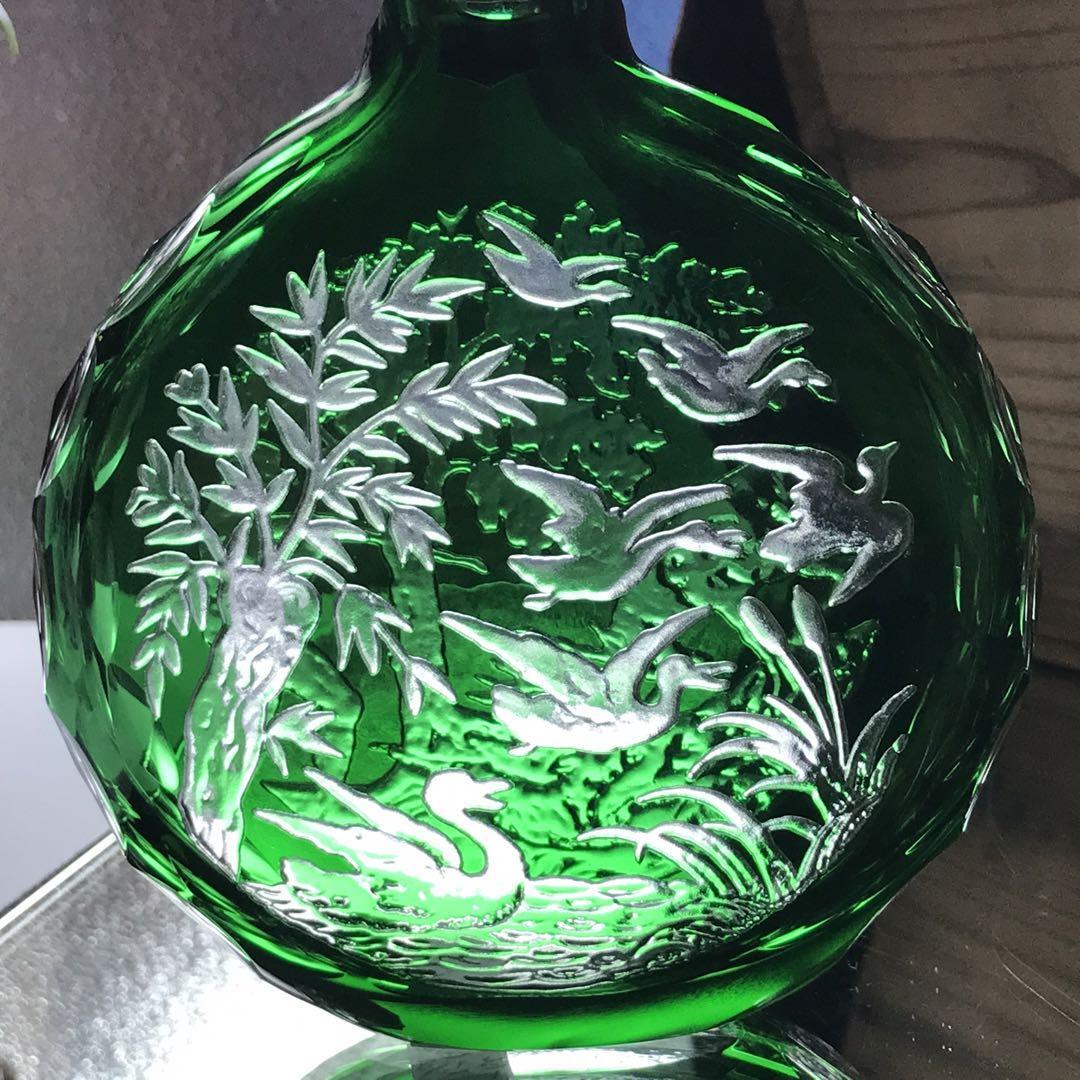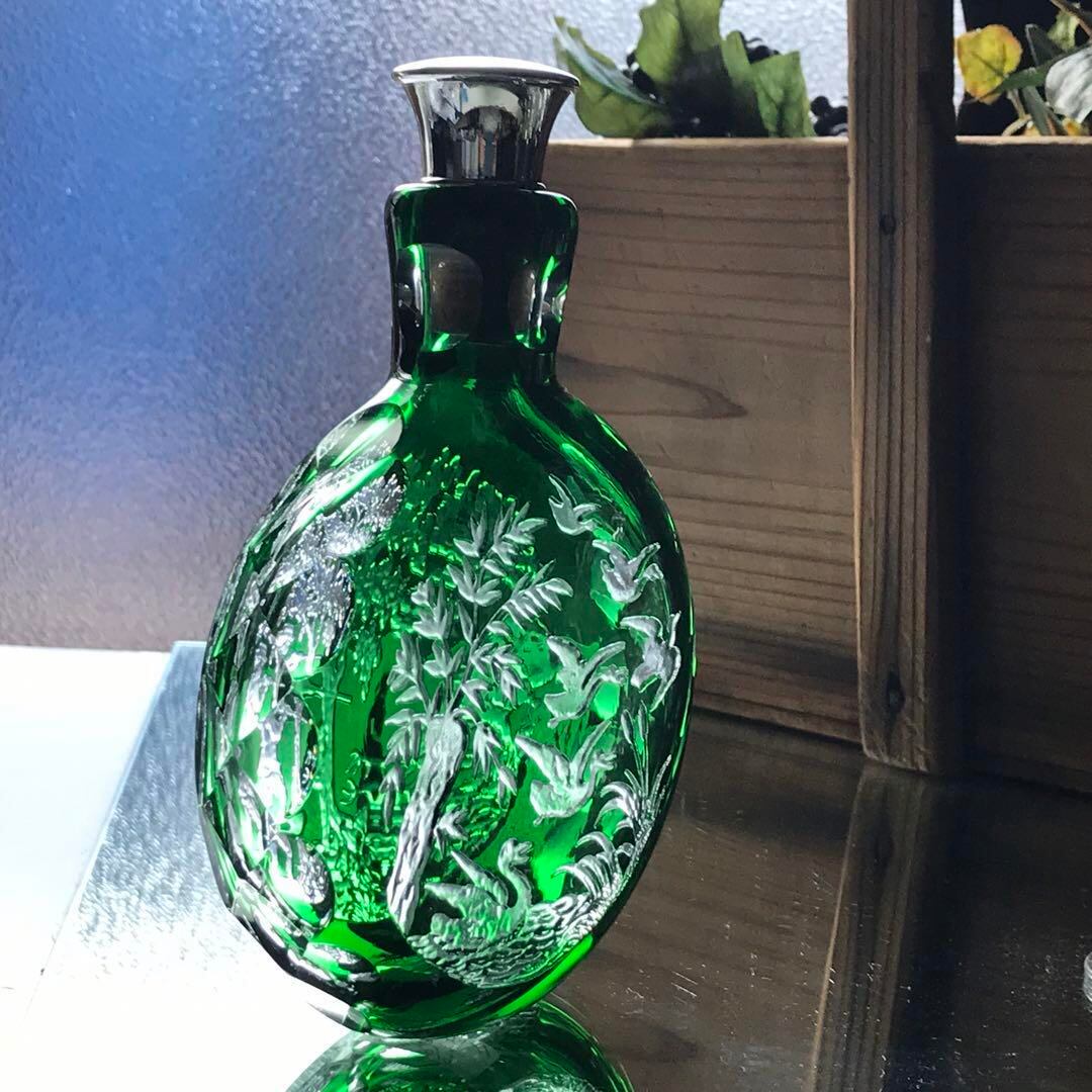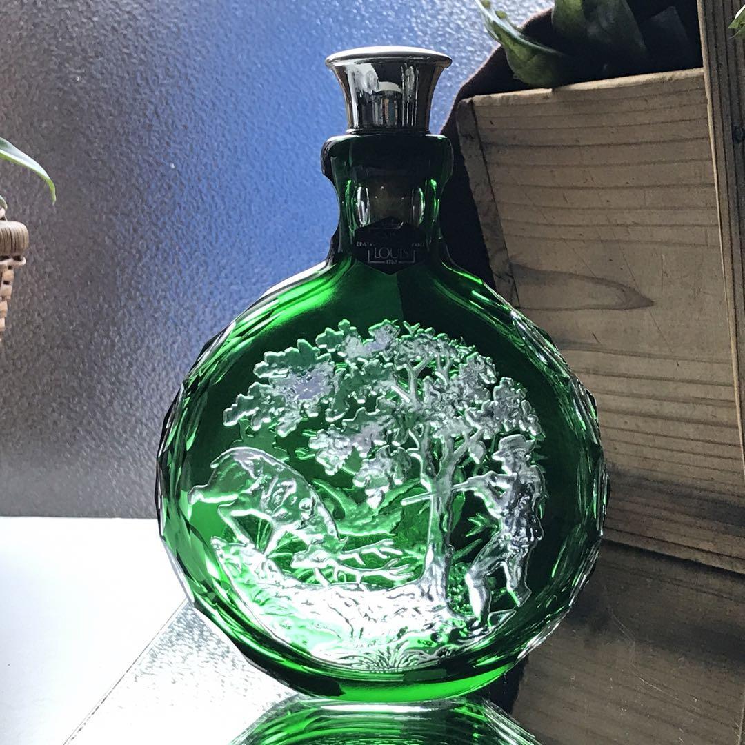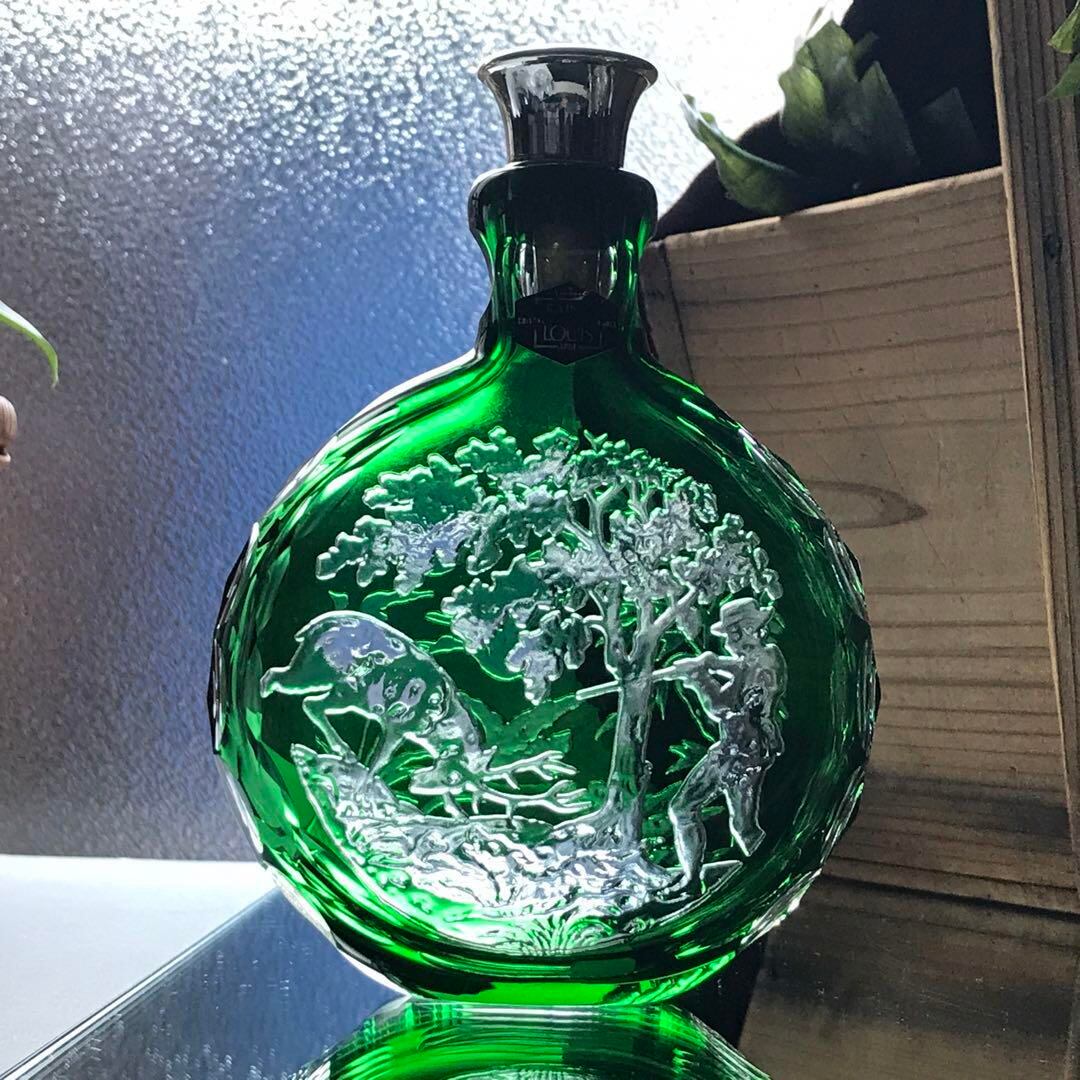 希少美しい造形☆サンルイSt Louisクリスタルスピリッツ・フラスコ被せ緑色☆
