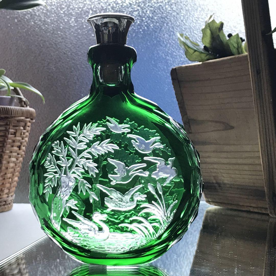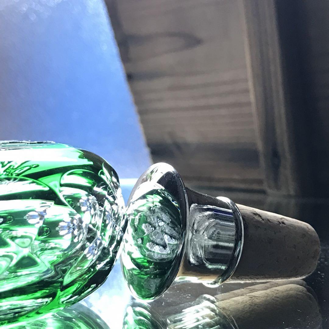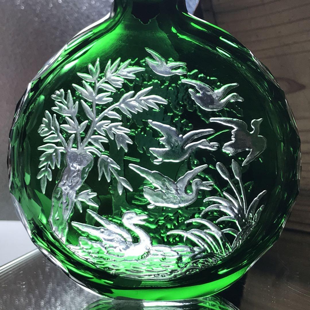 希少美しい造形☆サンルイSt Louisクリスタルスピリッツ・フラスコ被せ緑色☆