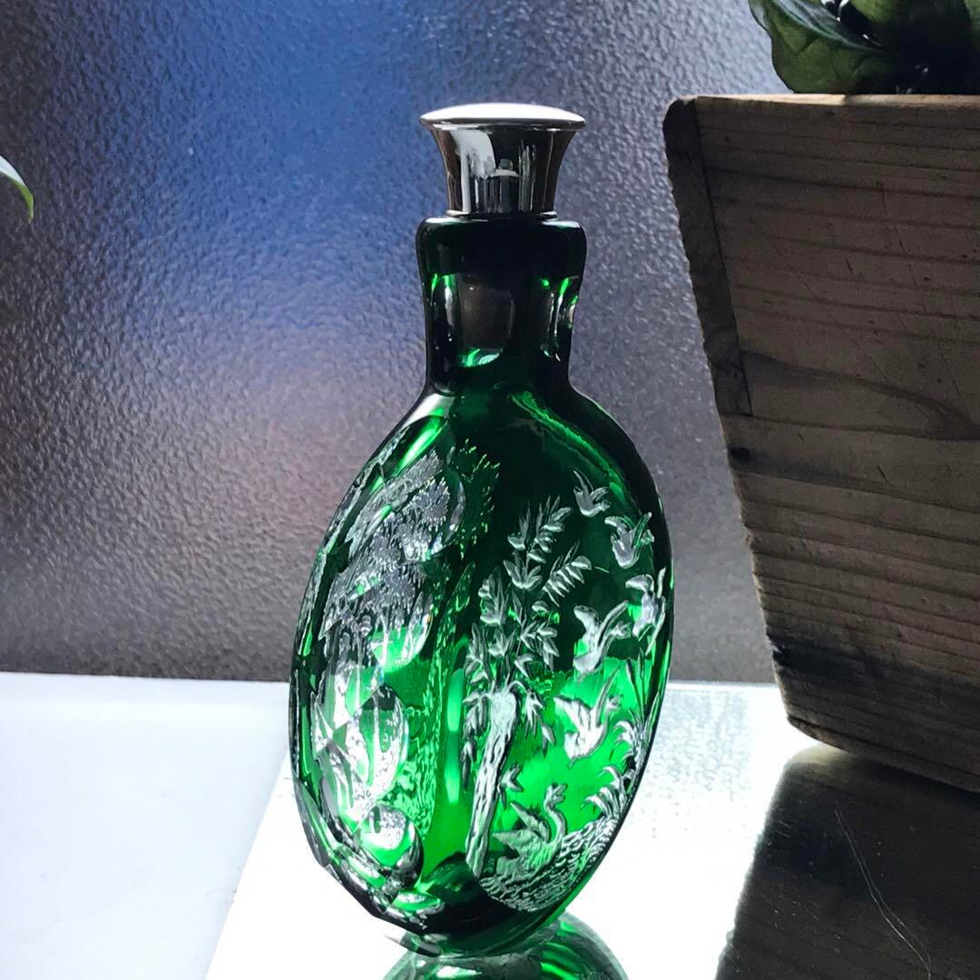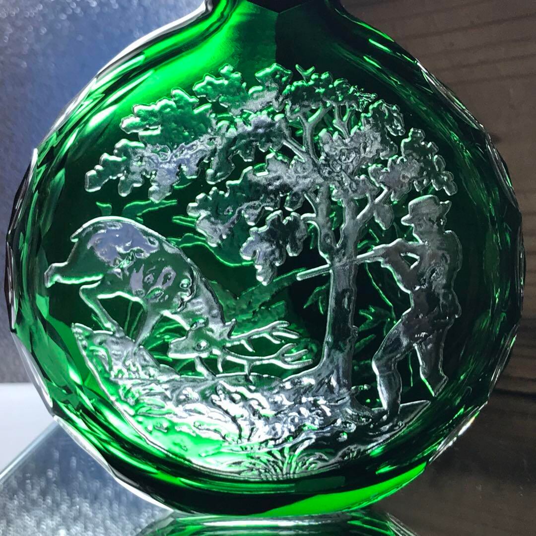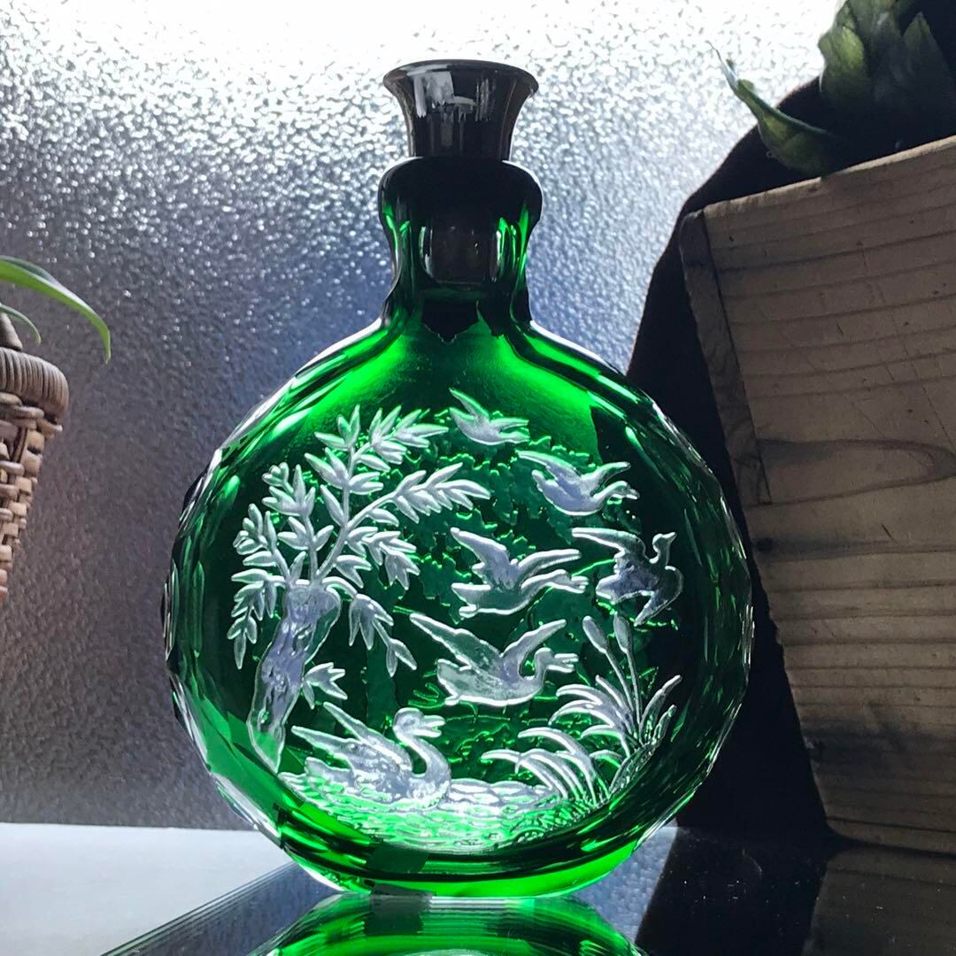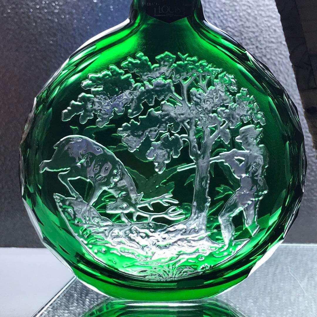 希少美しい造形☆サンルイSt Louisクリスタルスピリッツ・フラスコ被せ緑色☆