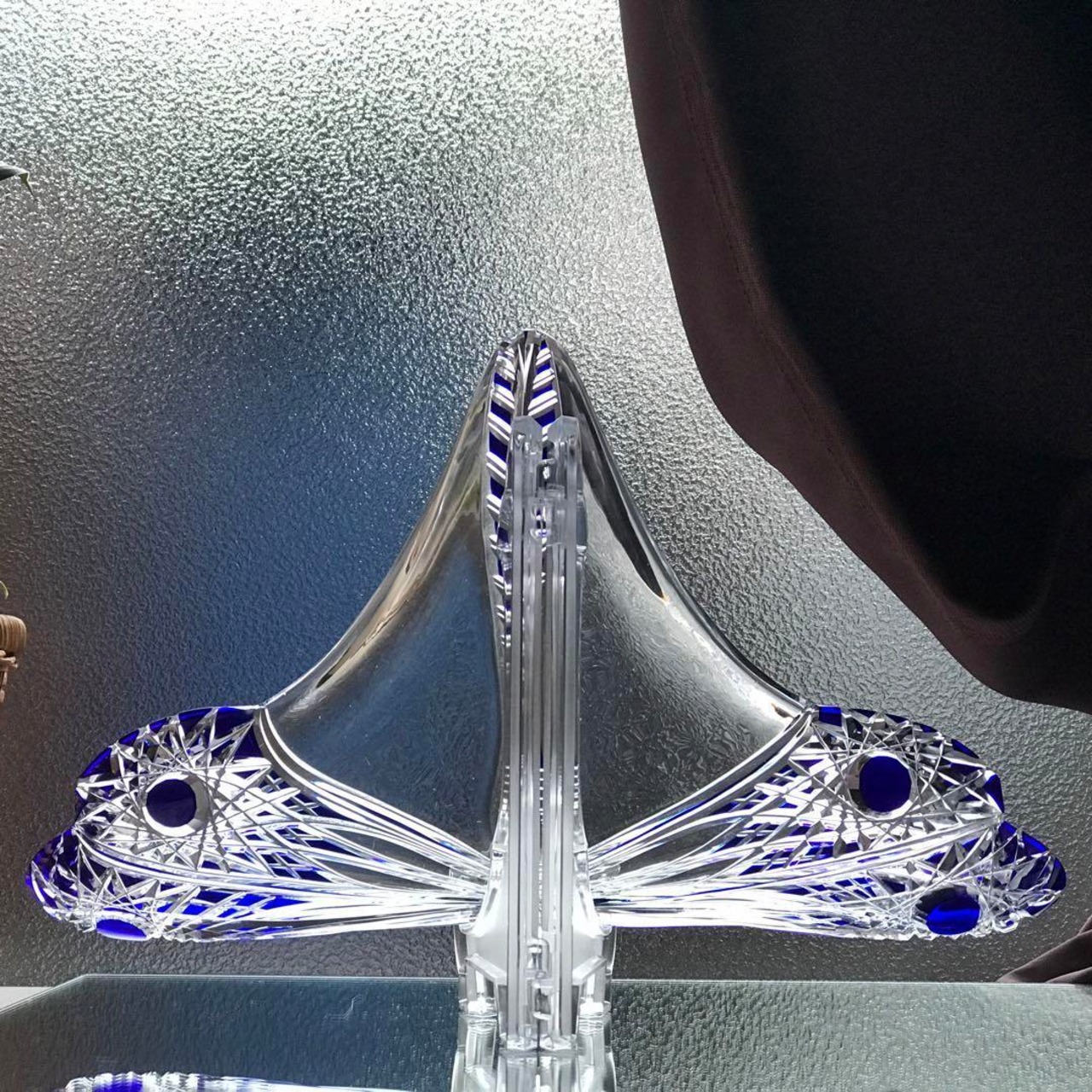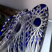 透明なクリスタルガラスの上からブルーのクリスタルガラスを被せ