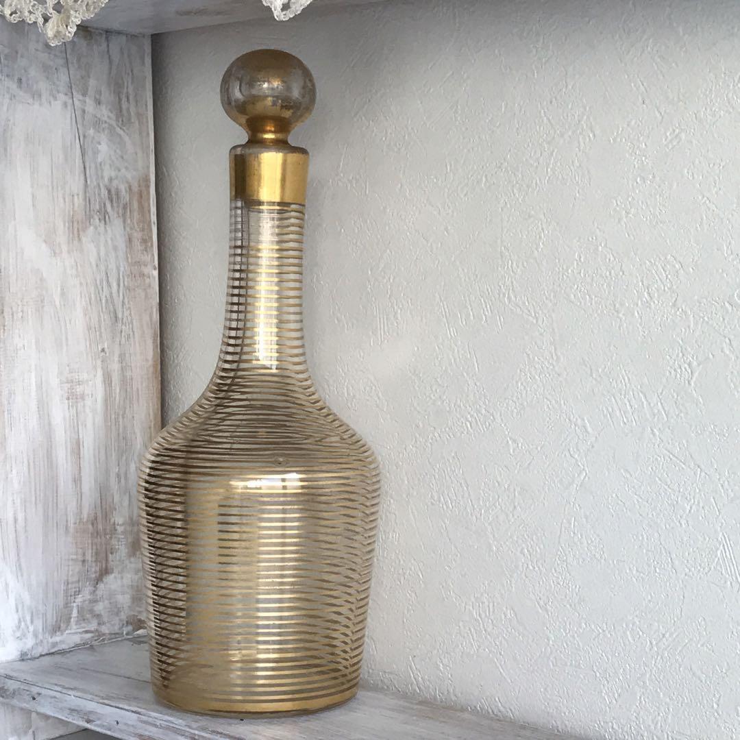 特別発注品☆オールドバカラ 春海商店 千筋文 リキュールカラフェ☆ 豪華金彩