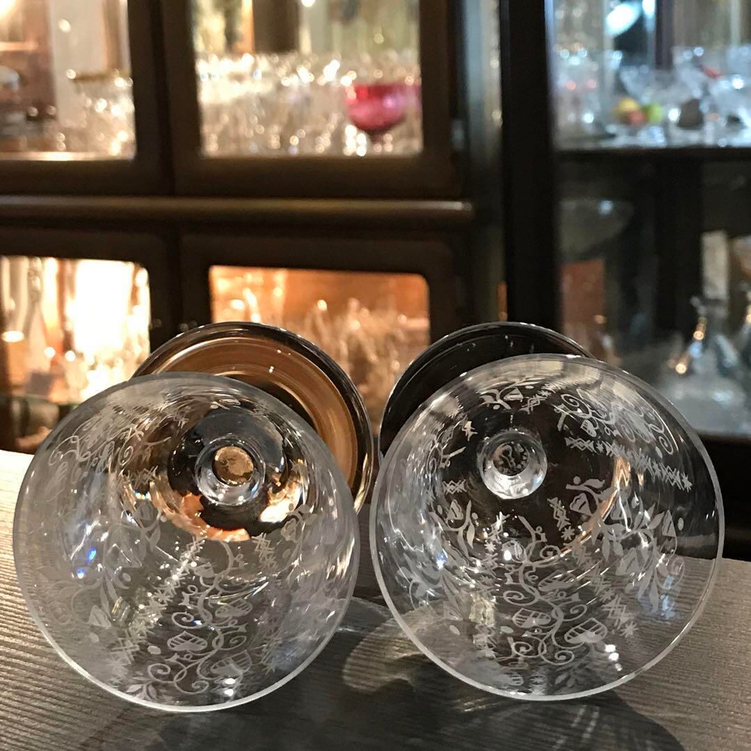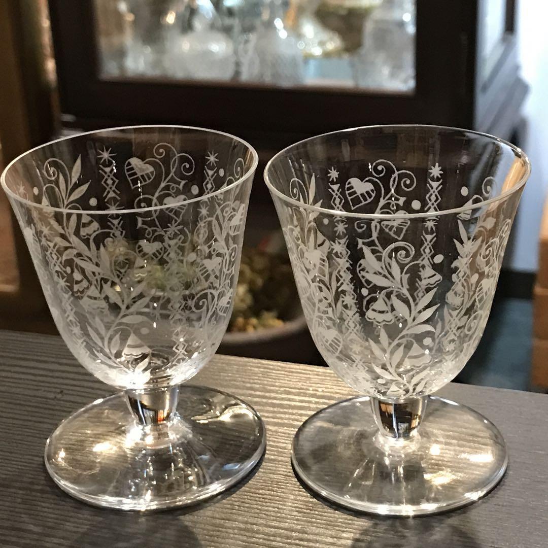 キュートな模様オールドバカラBACCARATアルジャンティーナ♪ワイングラスペア