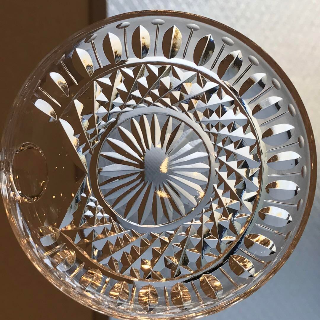 透明なクリスタルグラスに細かく丁寧にカットがはいっています。