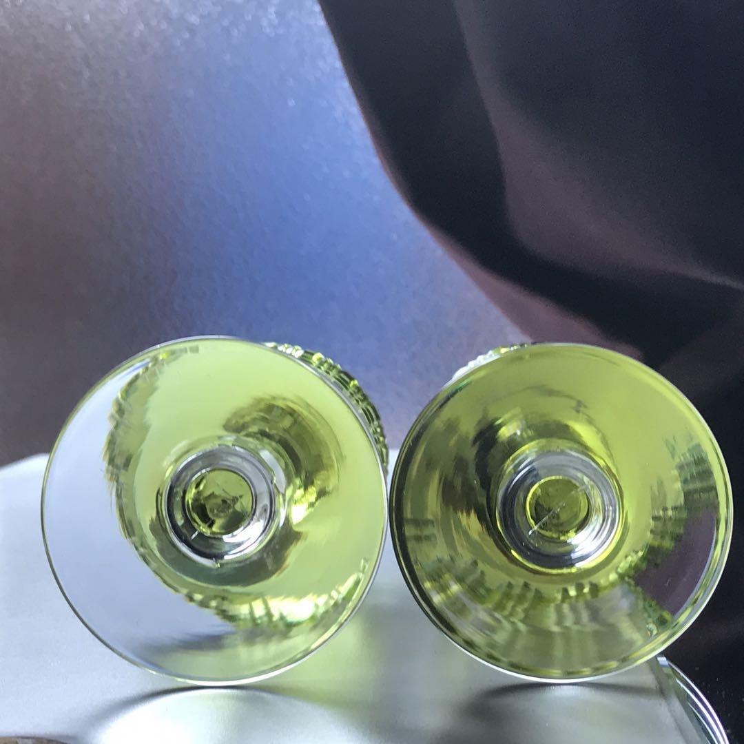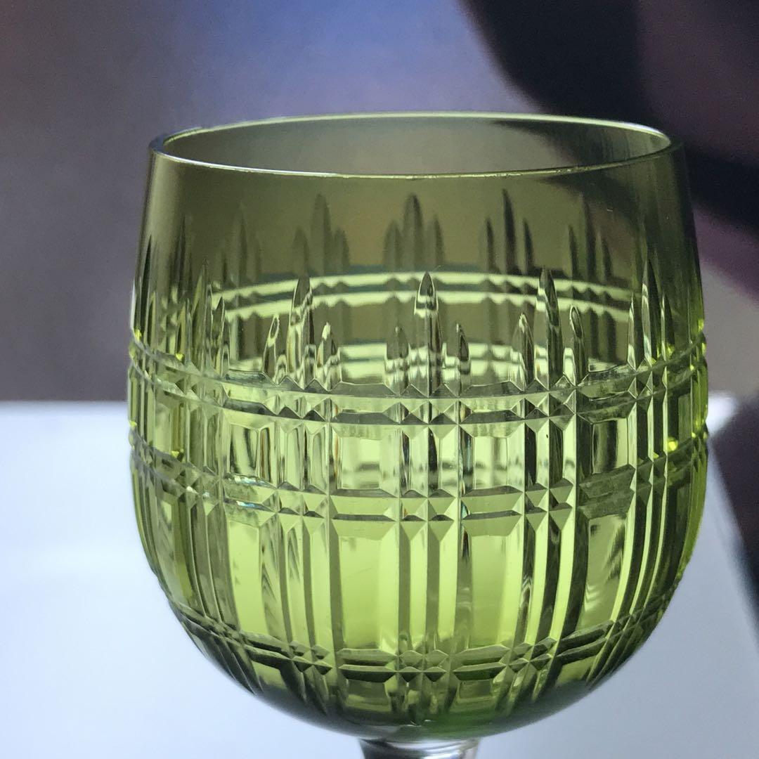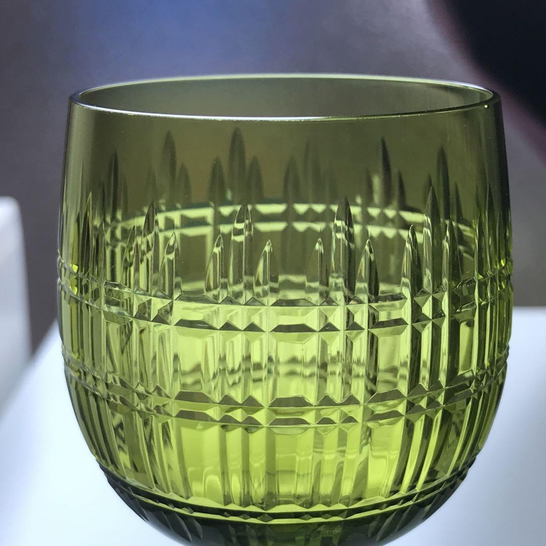 透き通った絶妙な色合いの緑色のクリスタルガラスのボウルに