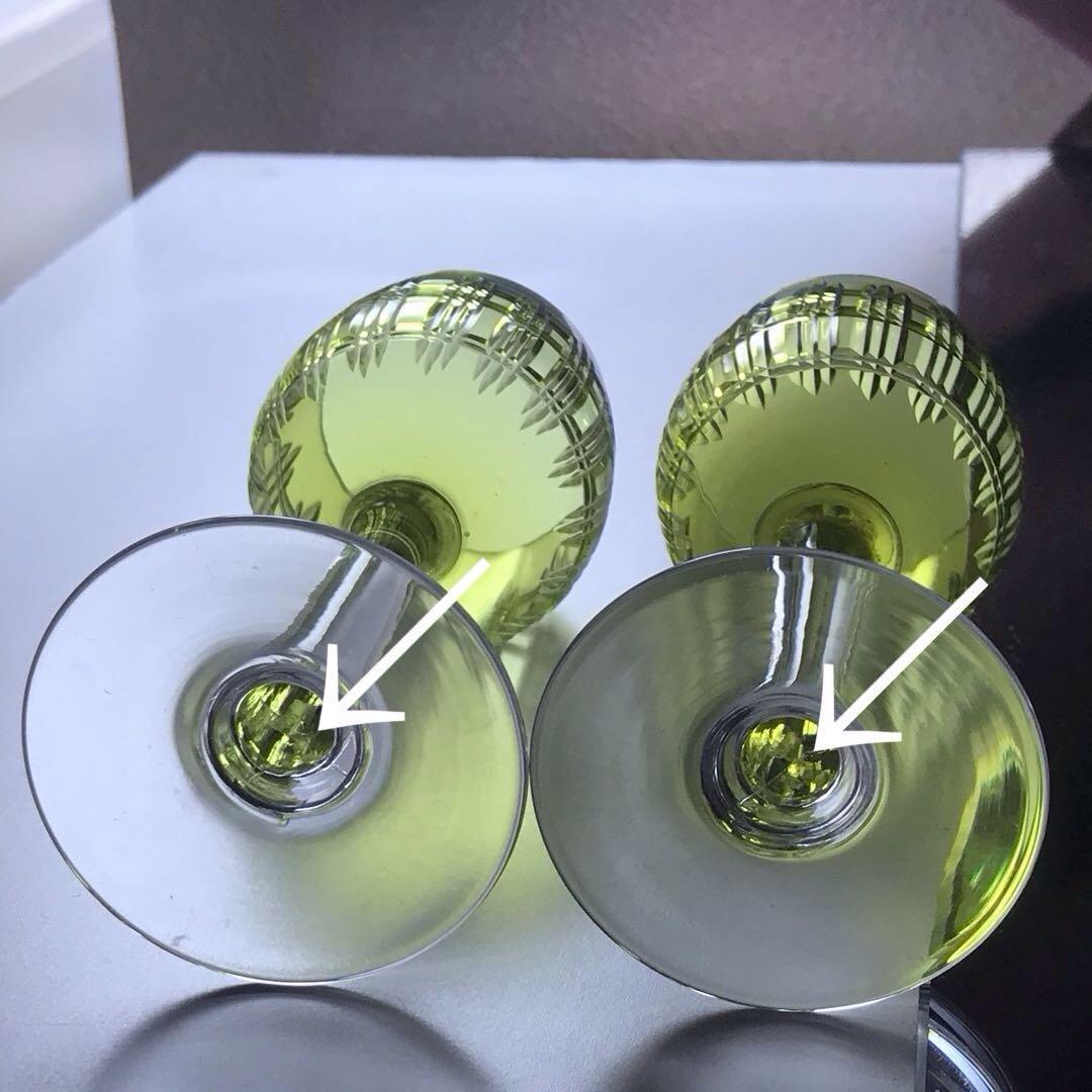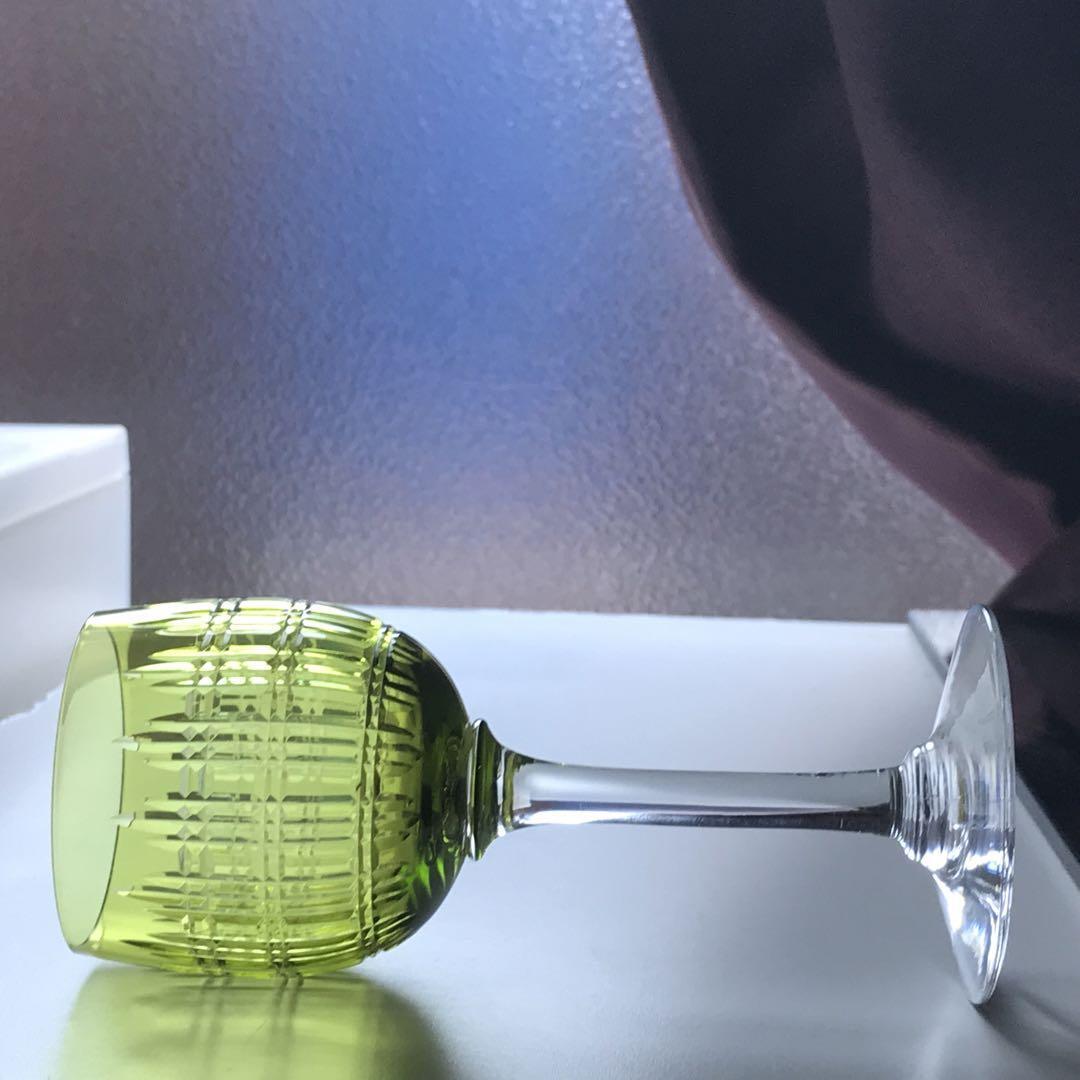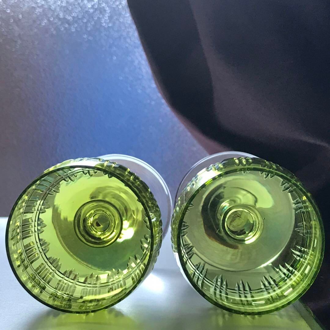 透き通った絶妙な色合いの緑色のクリスタルガラスのボウルに