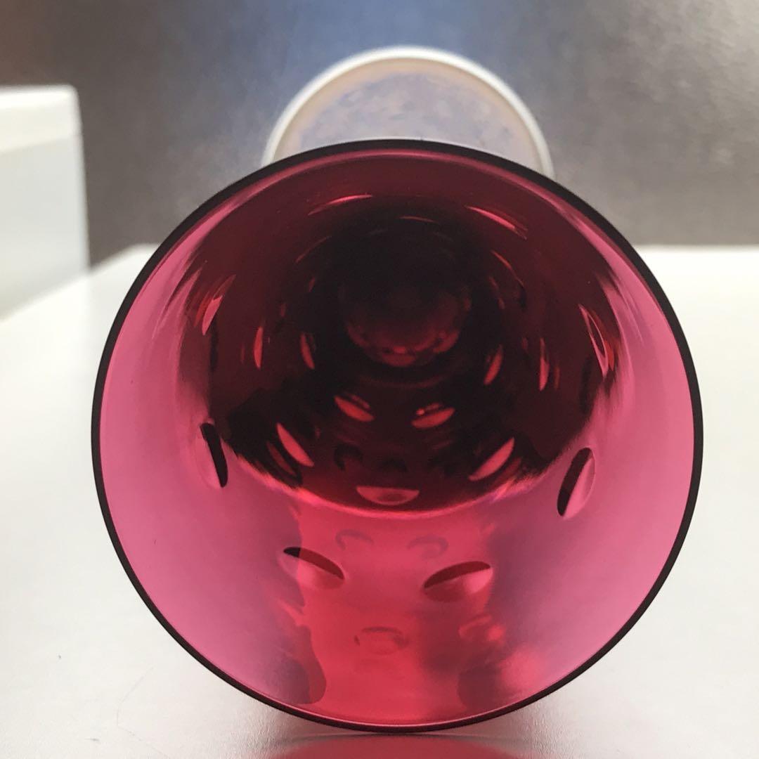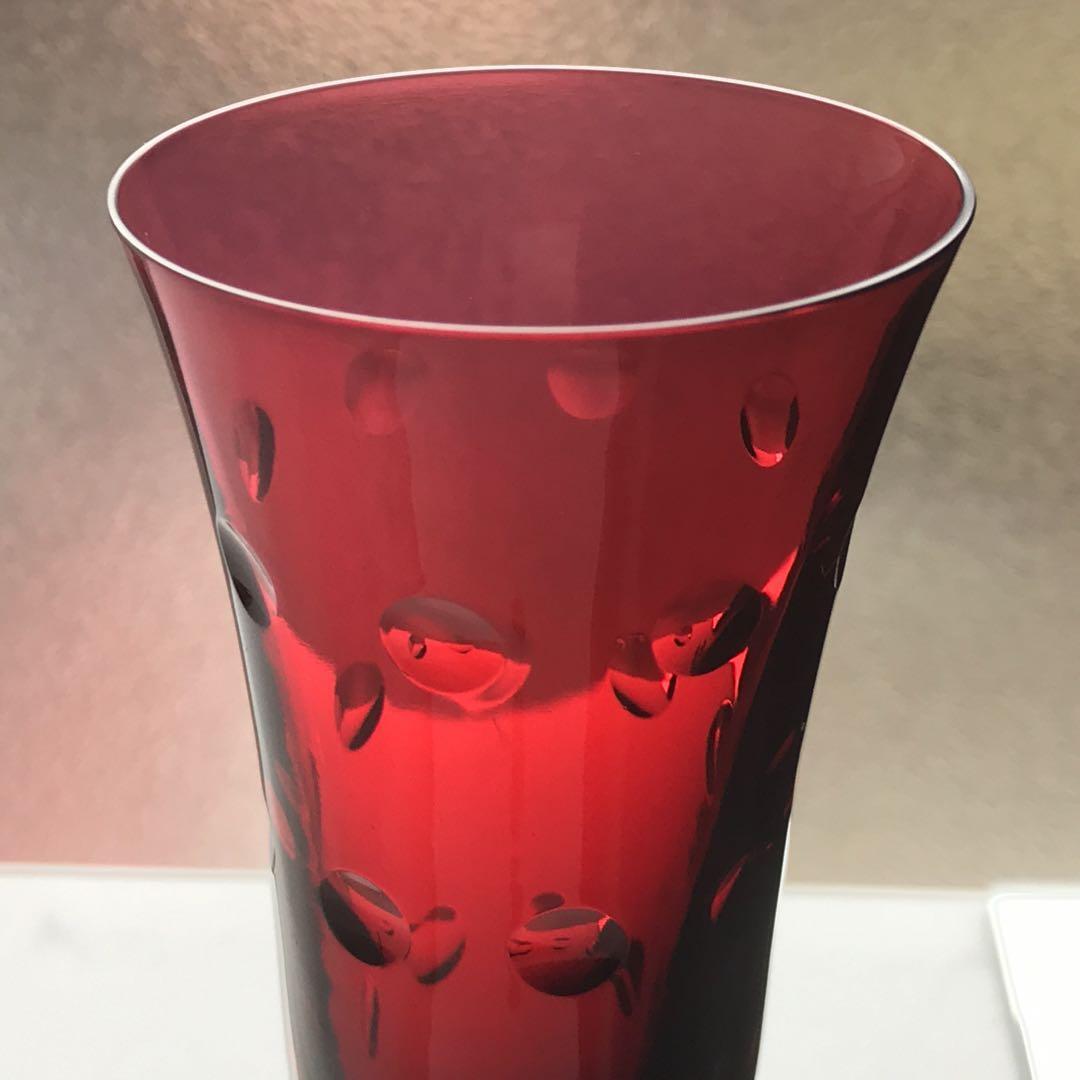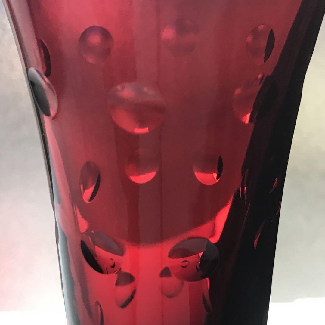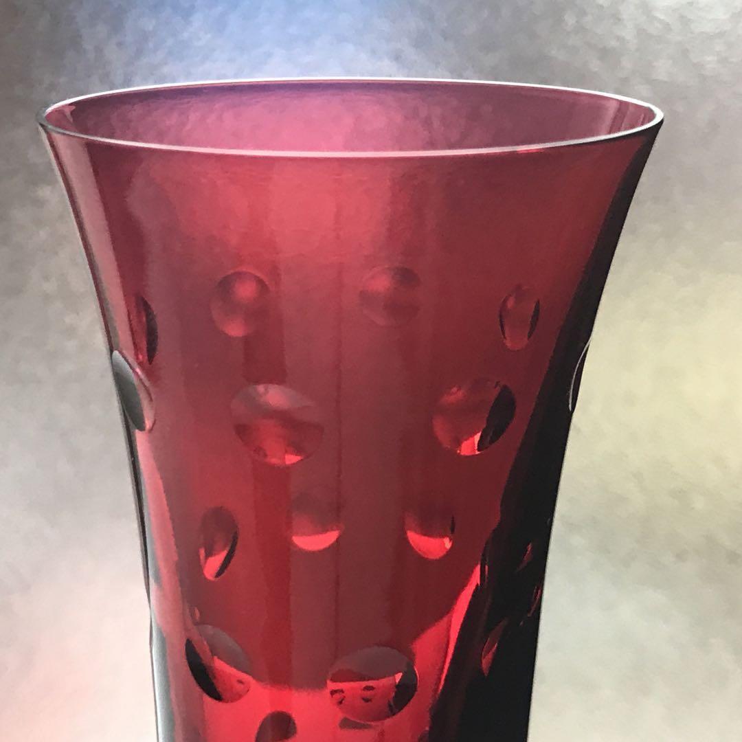 真紅の美しいクリスタルグラスには、所々エクボのようなへこみを作って