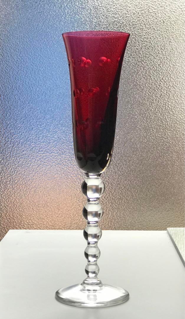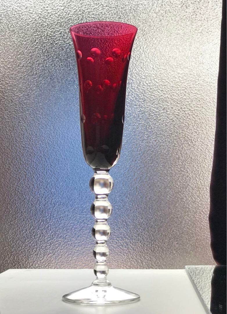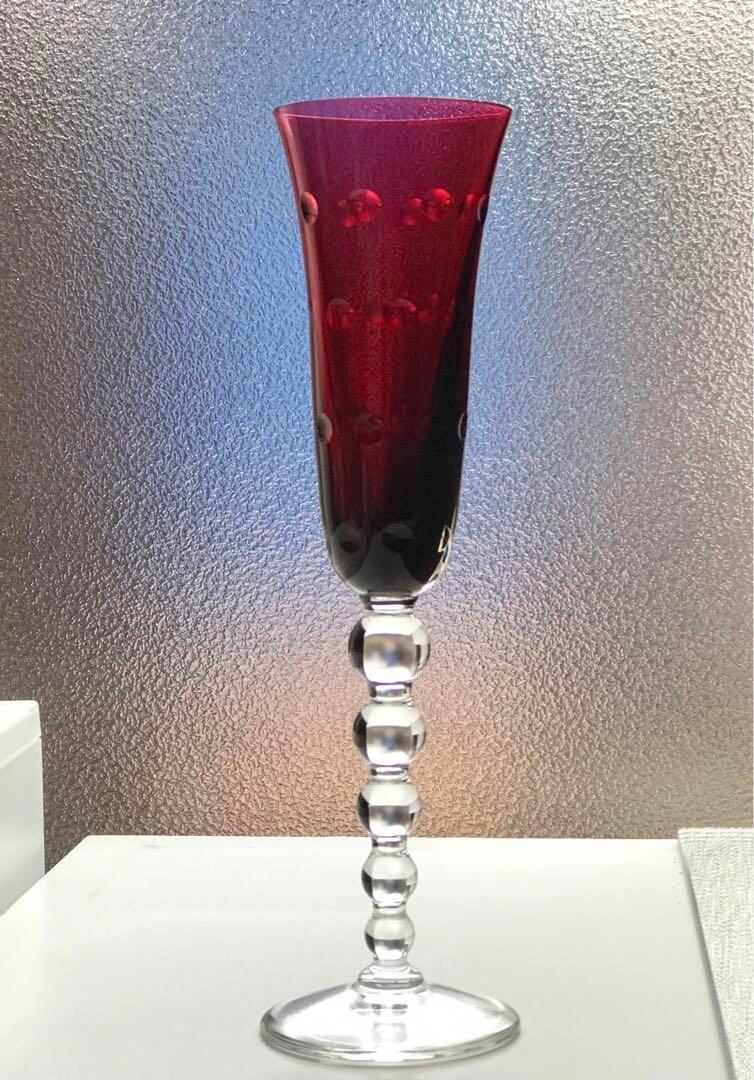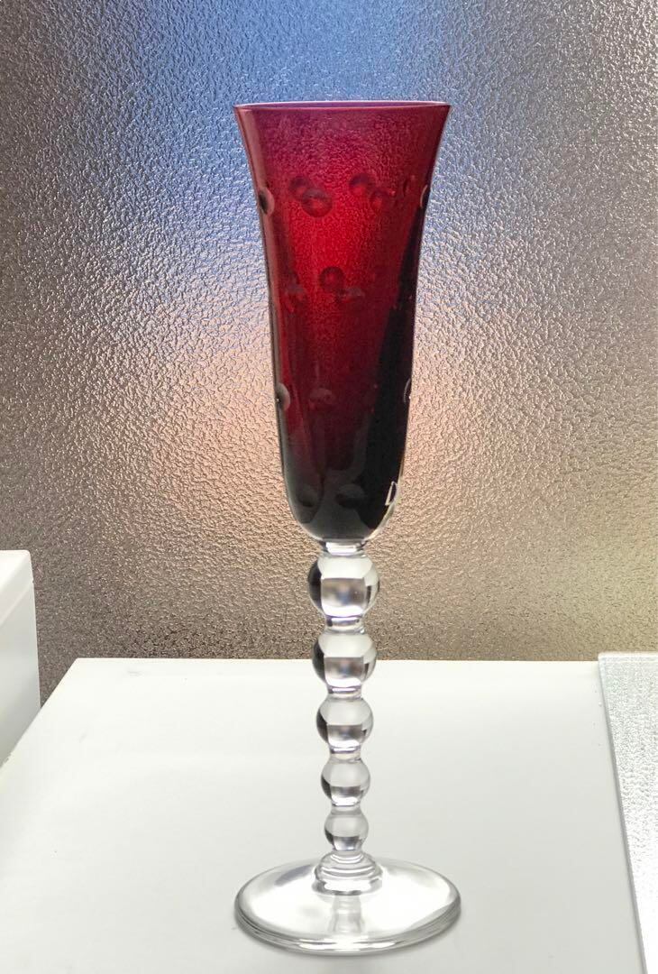 サンルイSaint LouisバブルBubblesクリスタルシャンパンフルート♡23.6cm 赤