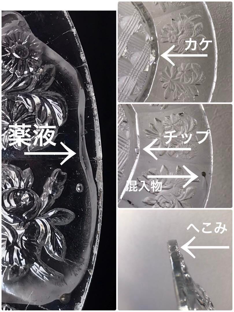 製造時についた気泡、薬液の付着、よれ、スレ、カケ、チップなどございます。